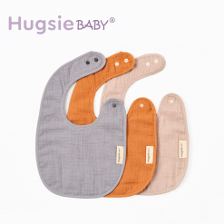 HugsieBABY純棉四層紗防水夾層圍兜 (3入組)